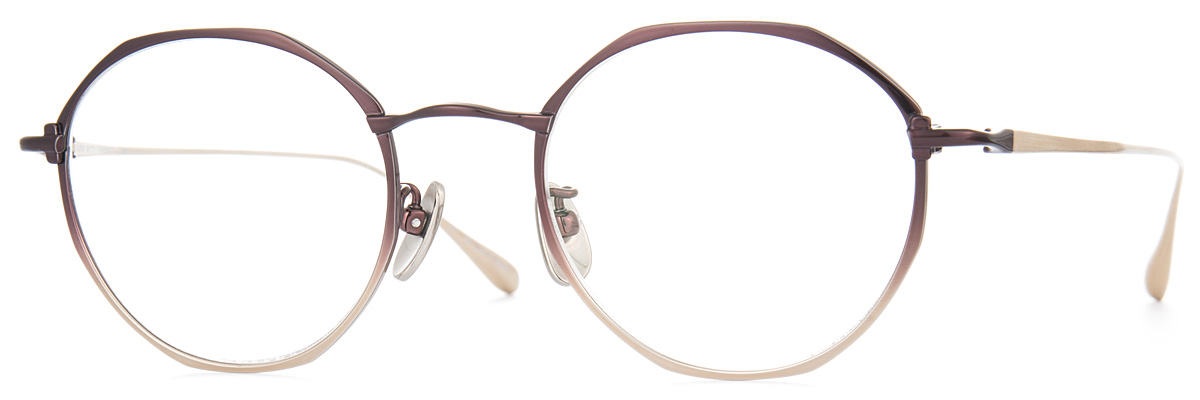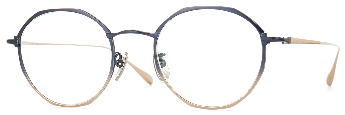 洋の東西を問わず、重要視される数字8に由来を持つ、外形が特徴的なオクタゴン風メタルフレーム。内側をボストンシェイプに見える様にカットリムを加工し、行き過ぎず掛けやすいフレームへと仕立てました。一般的なフレームに少し飽きのきた方に挑戦していただきたい、程よく冒険的なデザインです。
