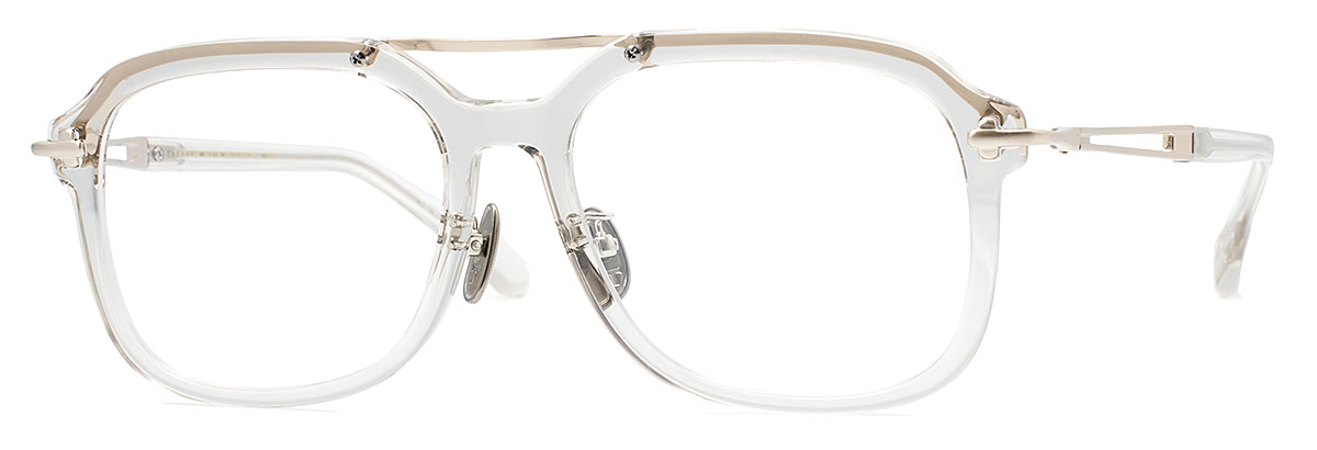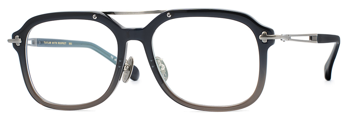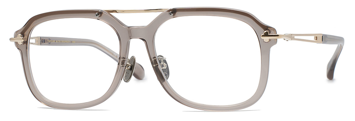 オリジナルパーツTスパインを、ツーブリッジのワタリに見立てたアセテートコンビネーション。ナードな雰囲気がある大き目のアセテートフロントに、ツーブリッジが融合するインパクトあるデザインです。高い機能と品質に、個性あるデザインを組み合わせた、ブランドらしさを感じるモデルです。