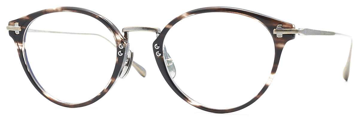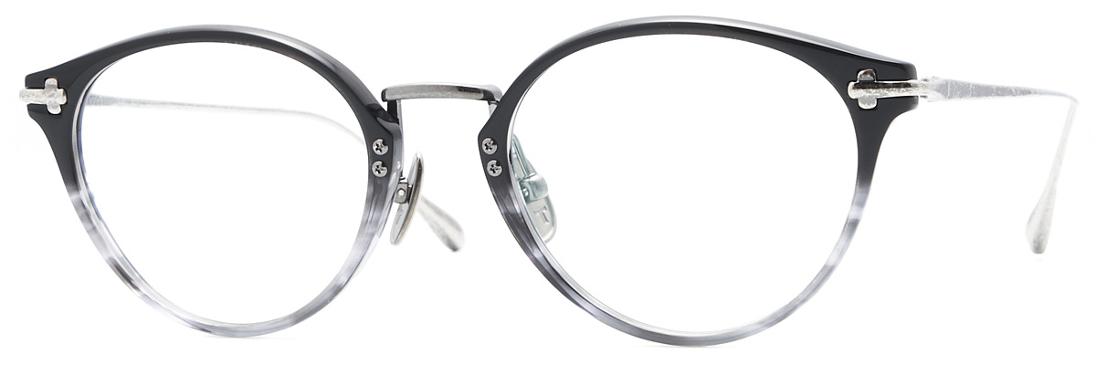 歴史上最も古い天然合成樹脂素材のセルロイドに、眼鏡素材として比較的新しいチタンを組み合わせたコンビネーションフレーム。アセテートと比べ型崩れしにくいセルロイドと、ネジ留パイプと一体型のチタン製ヨロイは、共に強度があり耐久性に優れています。柔らかな印象のボストンタイプのフレームです。