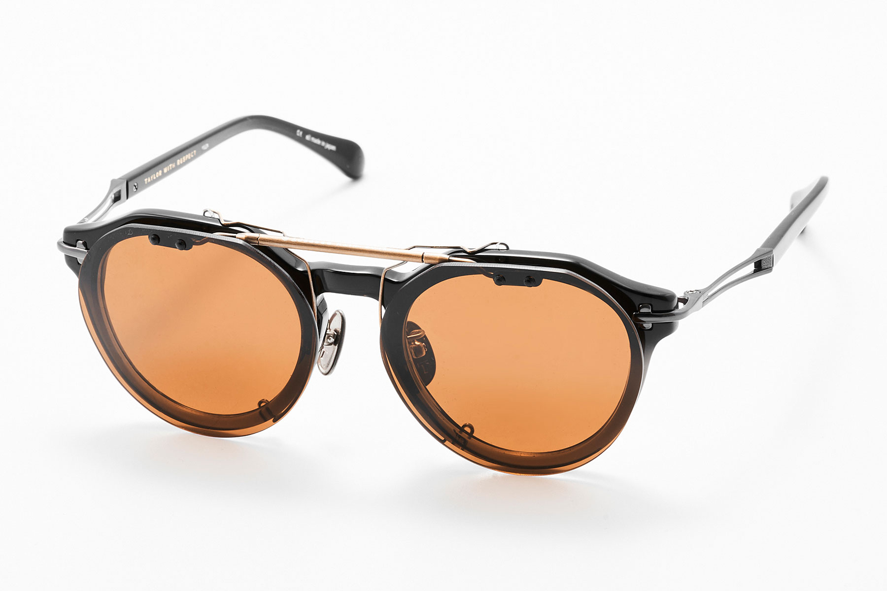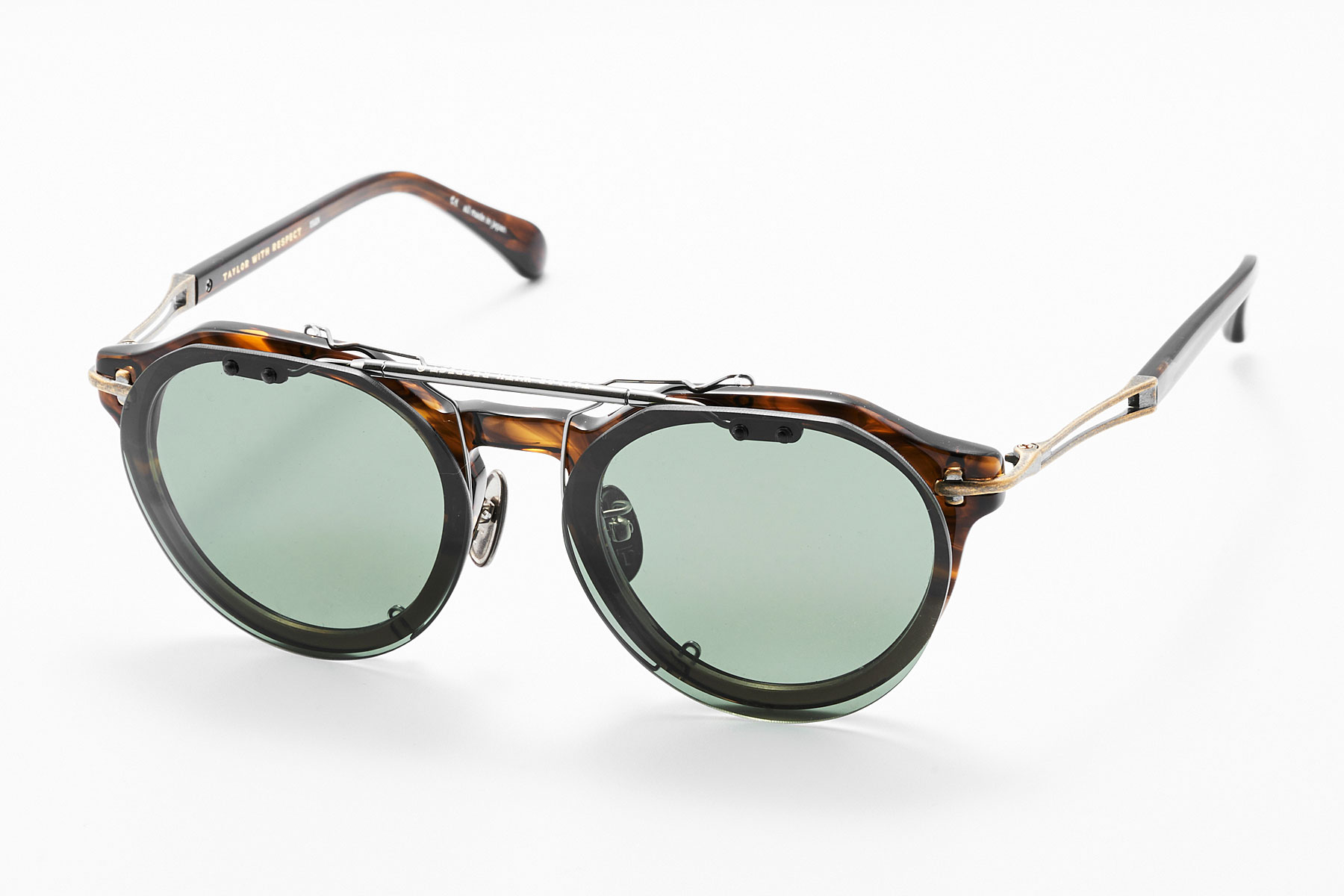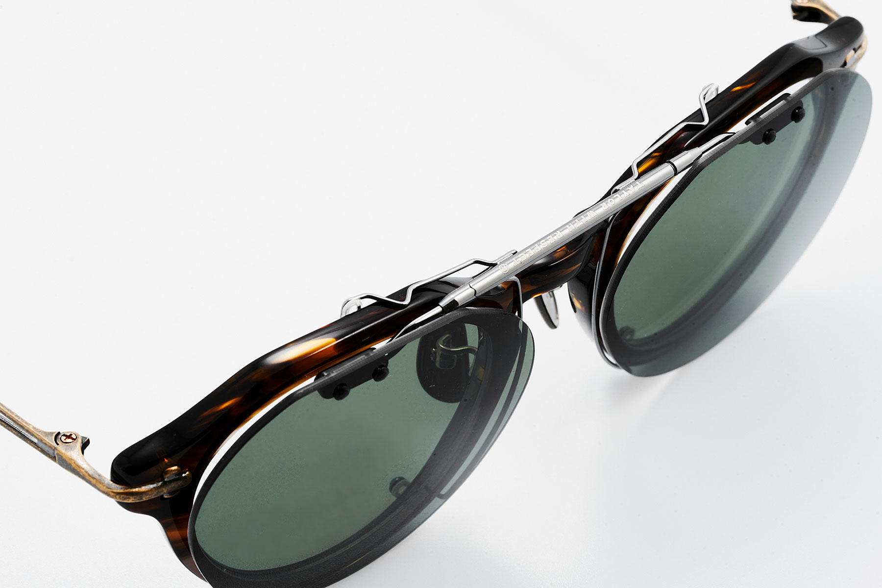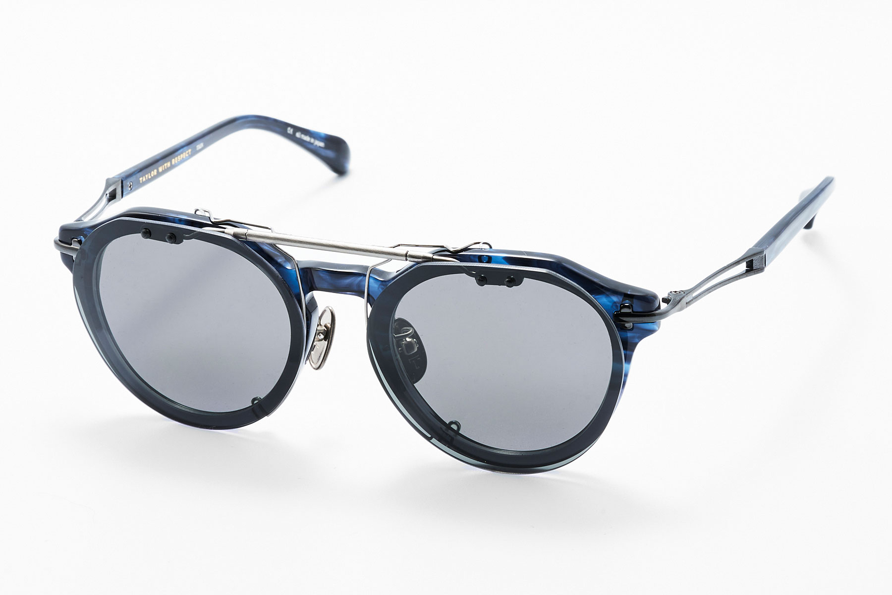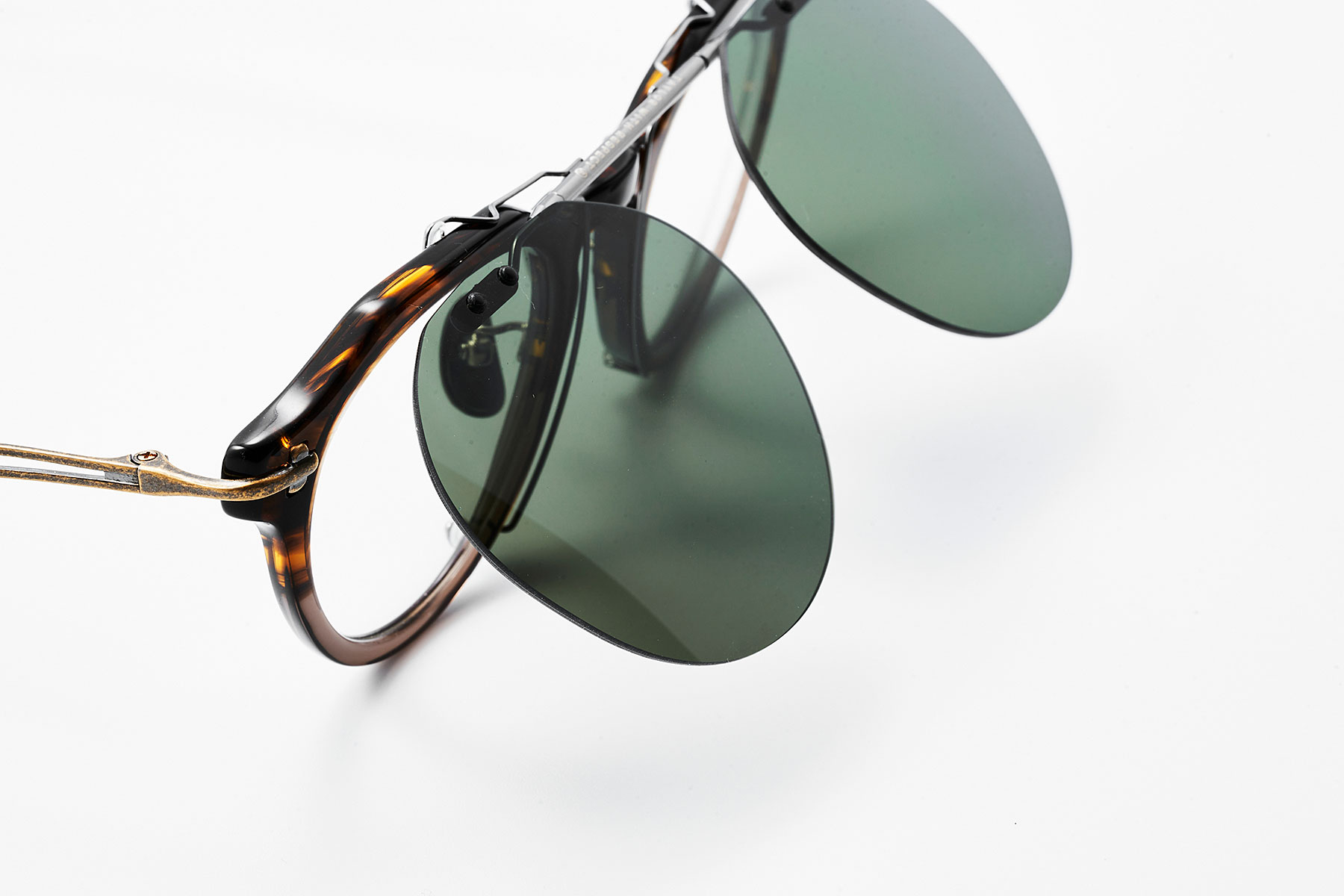 着脱可能なサングラス。レンズには、眼に有害とされる雑光をカットし、眼精疲労を軽減する偏光レンズを使用。カラーは3色展開。