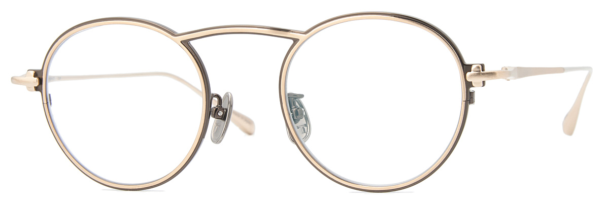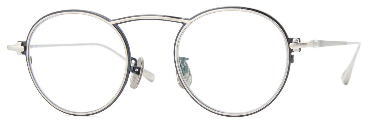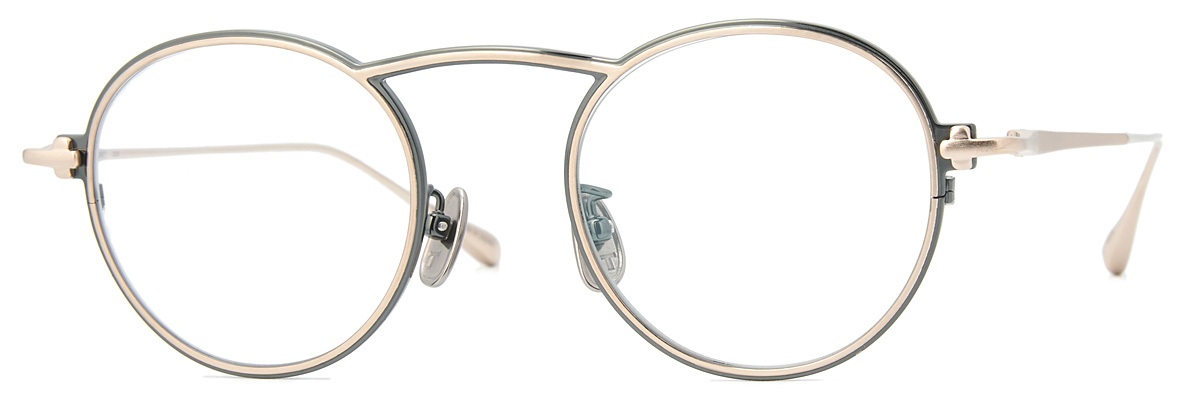 古来から伝わるハイブリッジのデザインにブランドらしい解釈を加えました。強度のため厚みが出るブリッジに、段差と色のコントラスト効果を使い、重々しくならないようスタイリッシュに仕立てています。ふたつのリールを繋ぐカセットテープから命名した、新しさと懐かしさの両面を感じるフレームです。