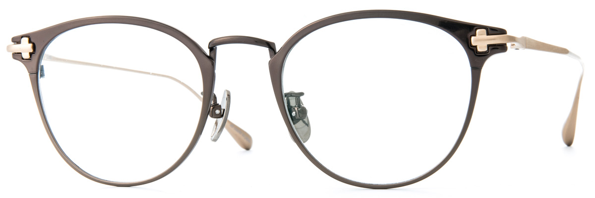 The front of plural is structured by pressed rim and original bridge, and the frame is all made of titanium. plural is designed by the measurement and process techniques of one one-hundredth. Brand logo is engraved in the original pads and the end pieces suggest the brand initial letter. The front shape is boston type.