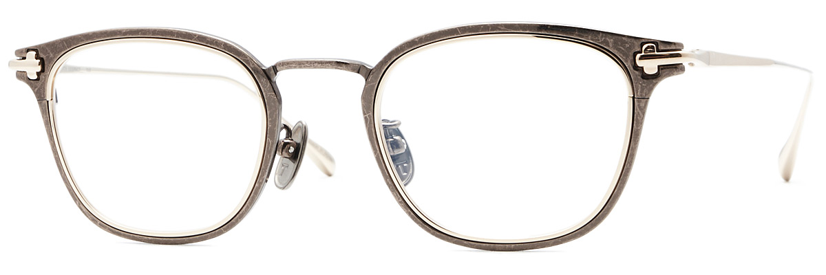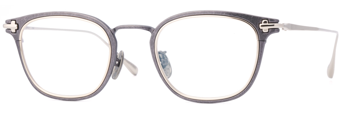 This model is made of all titanium and the front part is manufactured and integrated by cold forging. S-lined temples are made of β titanium. The in-curved temples reduce the space between your temple and the frame, which creates the refined design of the frame. The model features the double rims which both made of titanium. The motif is solar eclipse. The model name is based on norse mythology which tells us the myth that solar eclipse was caused by a wolf ate the sun. The wolf's name is SKOLL.