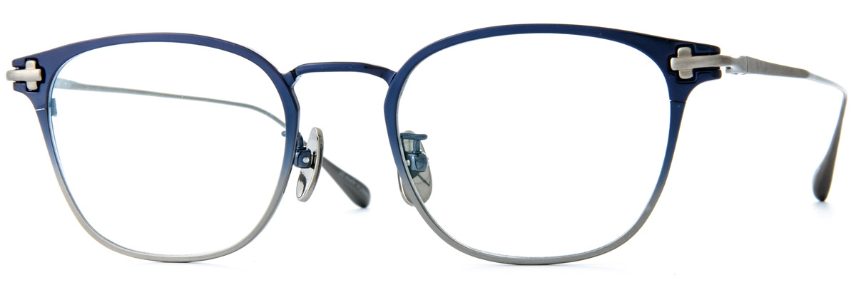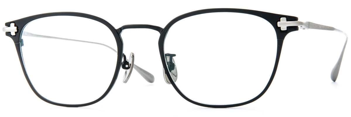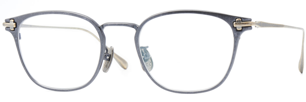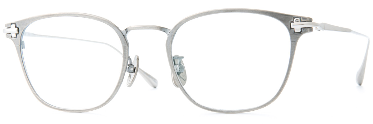 sole looks like a frame structured by different parts. But the front part is made of one piece of titanium plate. sole is made of all titanium. It has the slim design and β titanium S-line temples capable of bearing the structure load. The front and back parts are well balanced, and it creates the good fit and lightness of the frame. Details of each parts are well tailored. The front shape is wellington type.