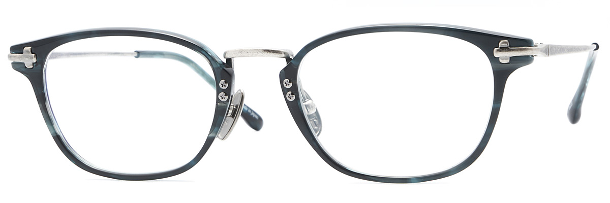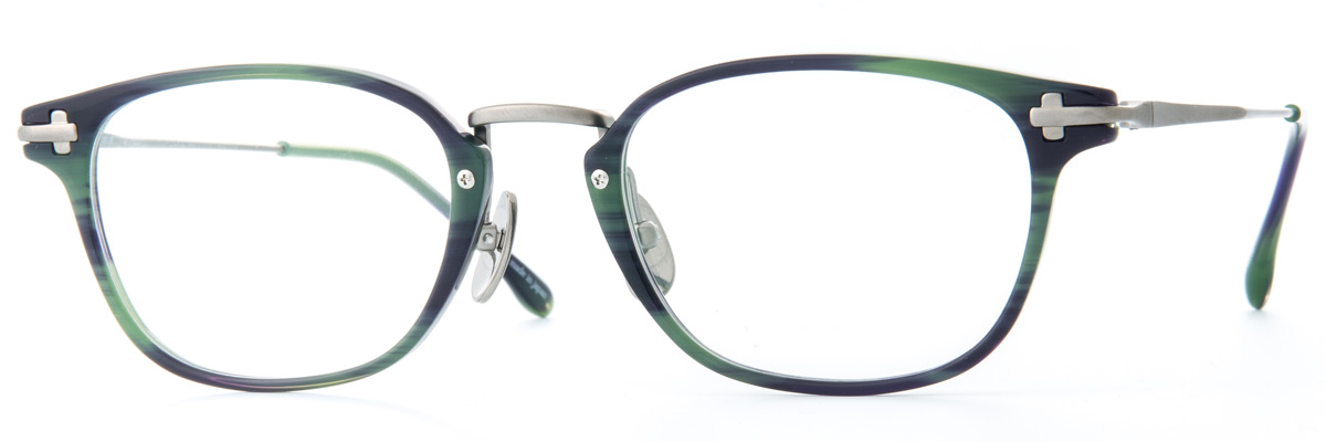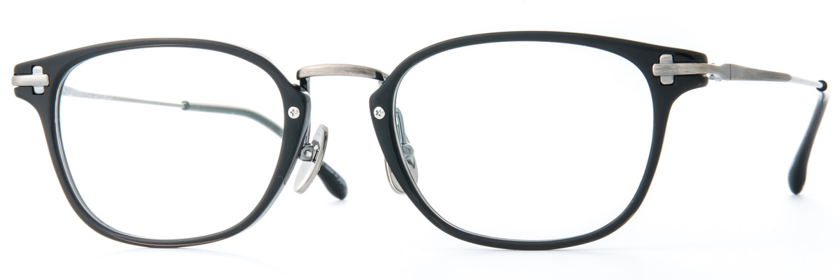 union is the combination frame which connects acetate rims with the original titanium bridge. It has achieved astounding lightness by the slim β titanium S-line temples and as thinnest acetate front as possible to keep the strength. The frame has exquisite balance. The front shape is wellington.