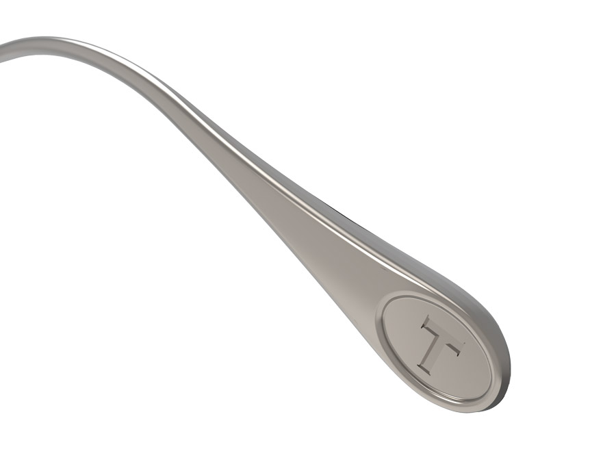 The brand's initial logo is engraved on the temple end. We take the weight balance of the temple ends with the front into account, so that lightness of the frame seems to be realized.