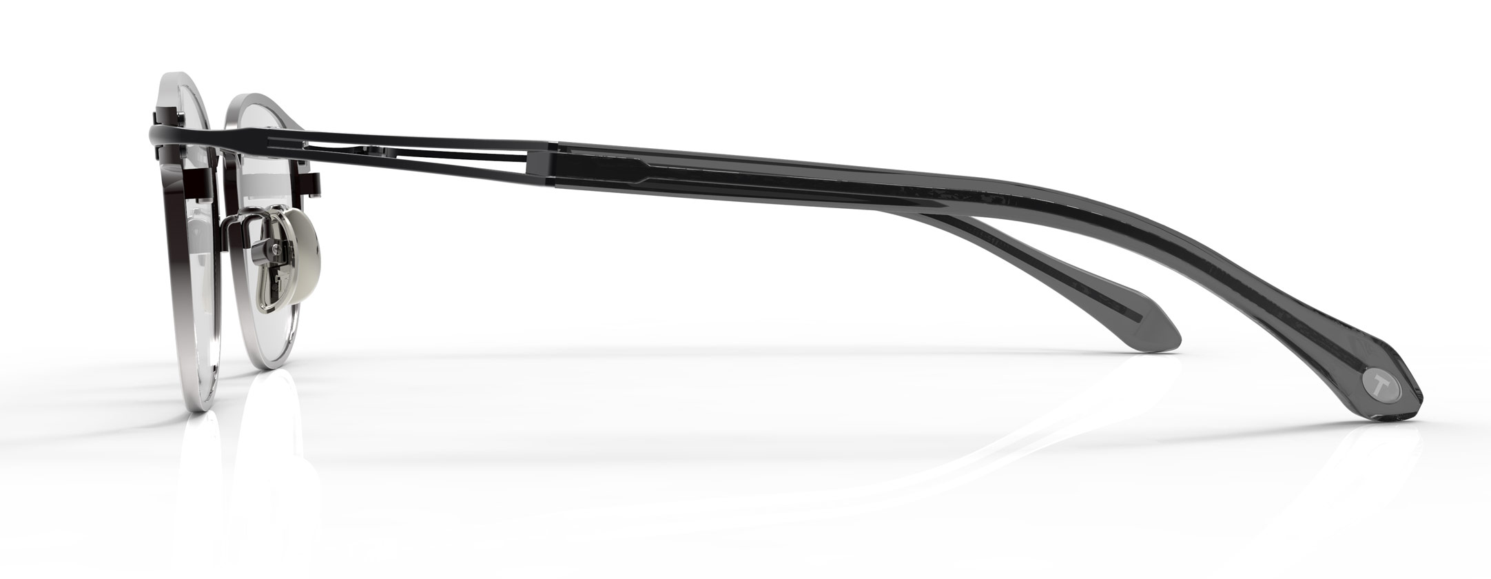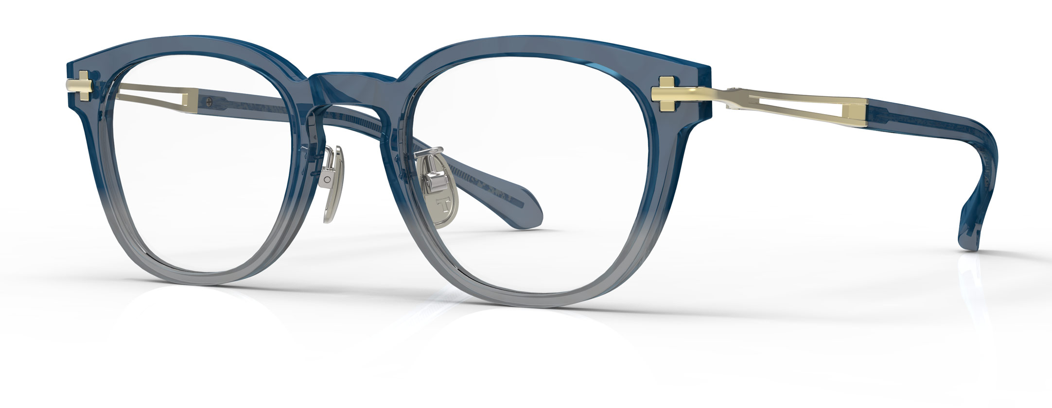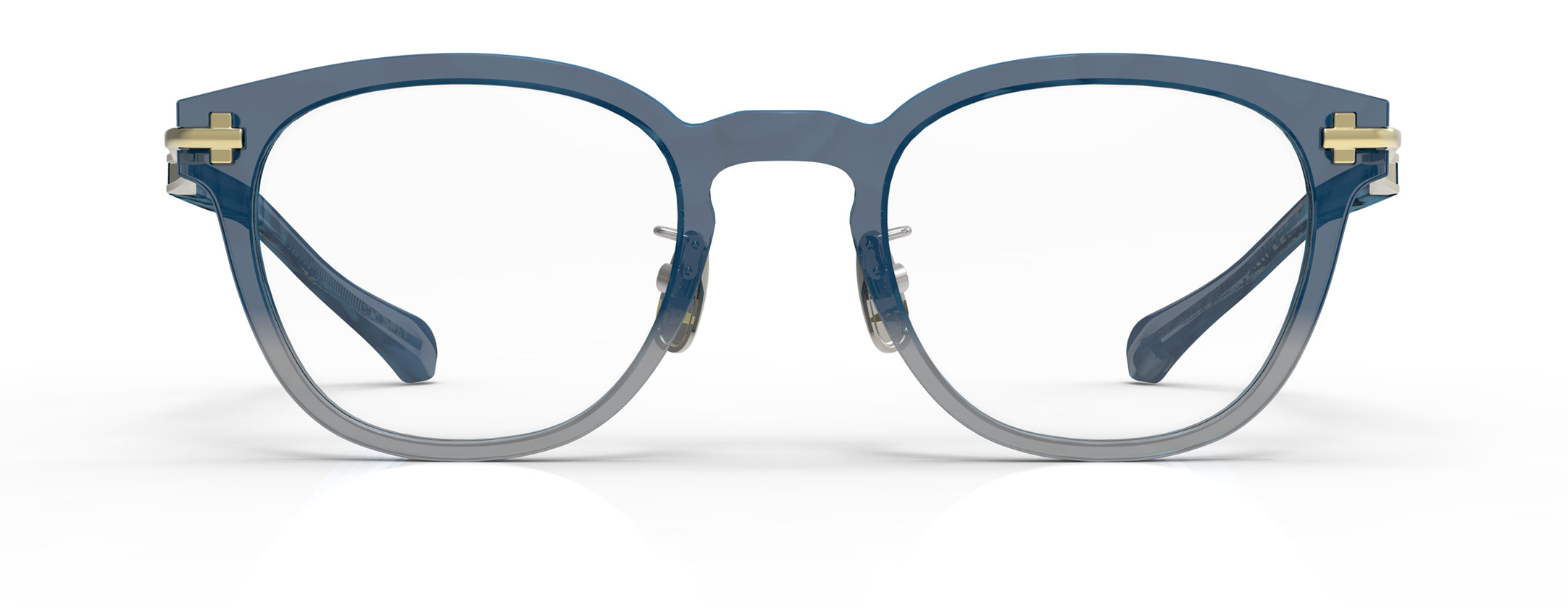 プラスチックとメタルの良さを併せ持ったハイブリットモデル。長いモダンとプラスチックフロントを採用したことで、アセテート生地がデザインの大部分を占め、オールプラスチックの雰囲気が楽しめます。T字のヨロイは調整の難しいプラスチックフレームの問題にも対応。テンプルには新たに開発したダブルSラインを採用し、プラスチックフレームにはない程よいフィット感と快適性を実現しました。思春期に観たムービースターが掛けていたフレームデザインがモチーフ