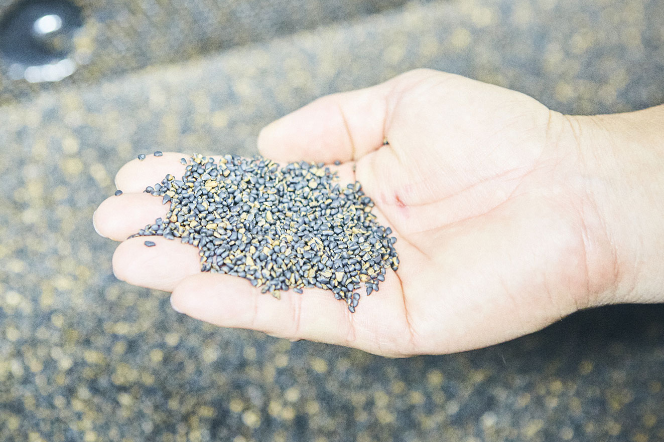 宮下 ベータチタンの素材で、このテンプルの細さを作るのはかなり難しいんです。磨くためのガラ研磨機の中に普通に入れてしまうと、パーツのフォルムが変形してしまいます。ベータって素材としては硬いものじゃないですか、あれをそのまま普通にガラの中に入れるだけではうまくいかないんですよ。それに胡桃チップじゃないと綺麗に仕上がらなかったりもします。普通にするだけではベータに艶が出てこないですけど、とはいえガラの中に入れすぎると、パーツのエッジが落ち過ぎてしまいクオリティが下がってしまう。チタンといえば鯖江の眼鏡にとって一番重要な素材なんですけど、実は使いにくい材料でもあるんです。