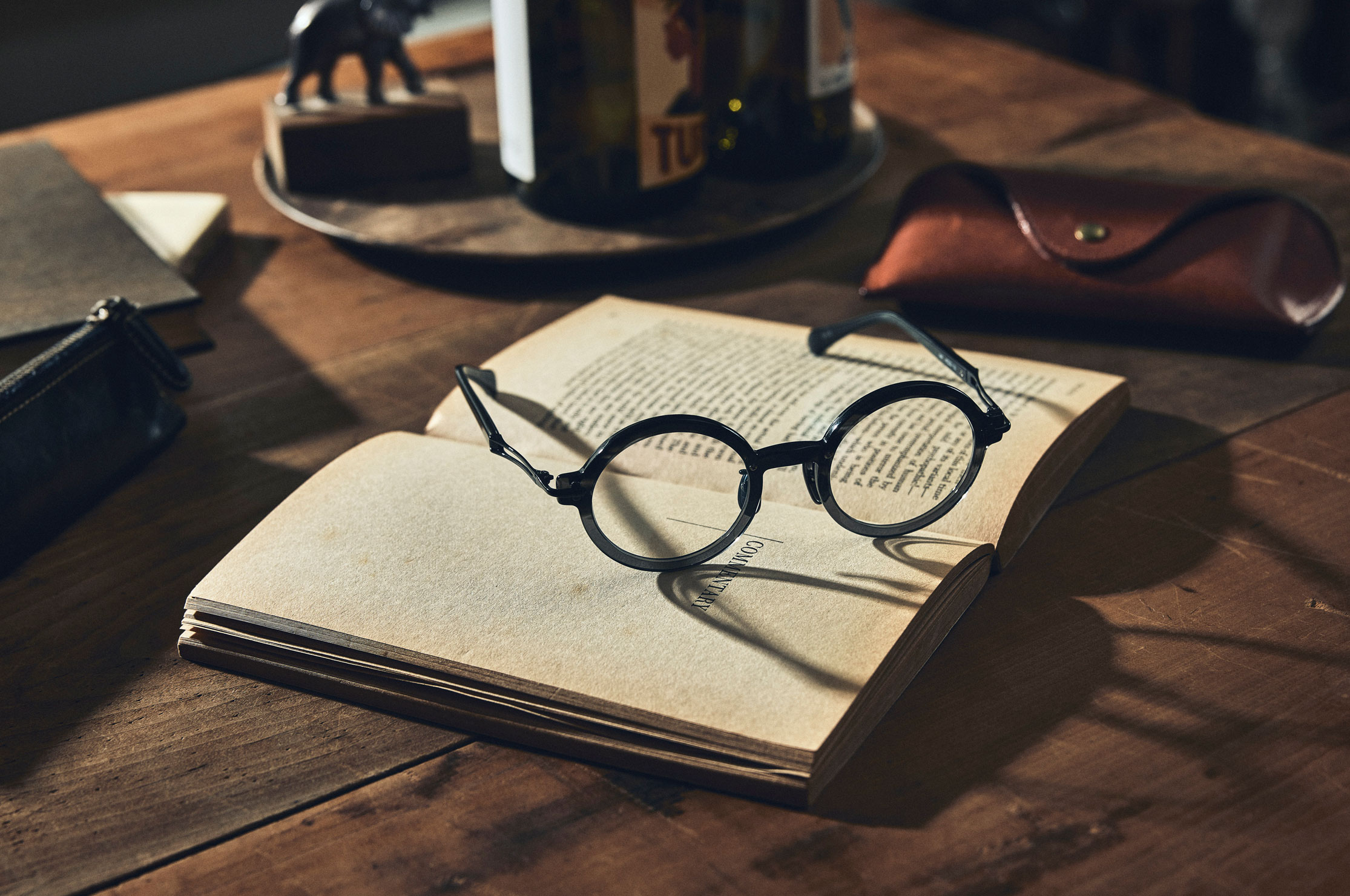 小さすぎないラウンドのサイズがより個性を表現します。オリジナルパーツT-スパインがアセテートの経年変化を防ぎ、バネ性が高いダブルSラインによるテンプルは、程良いかけ心地のホールド感を生み出しています。