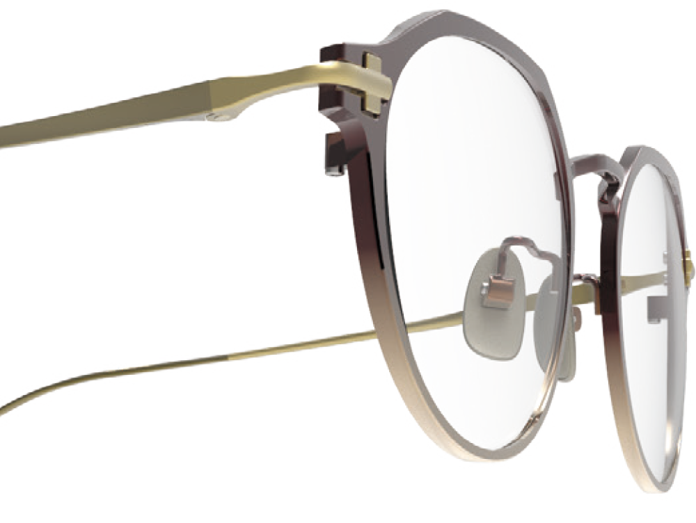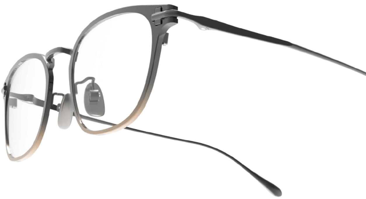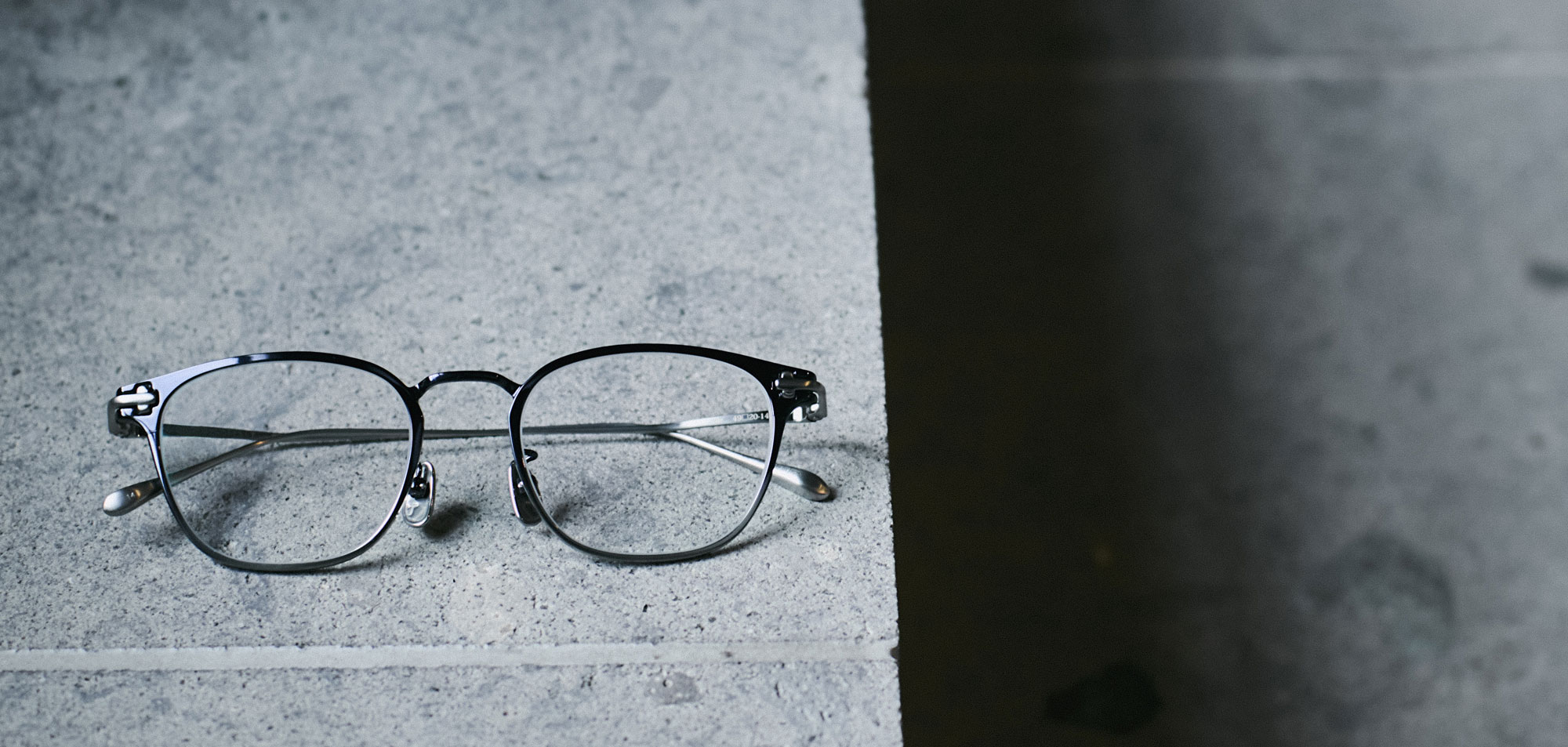T-スパインを採用したフレームデザインは、アセテートとメタルが重なることにより、より上質にみえる表現へと仕立てました。